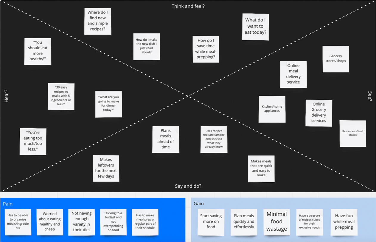 Once the quantitative and qualitative research was done, I started building an empathy map for the user demographic, and it looked like this: