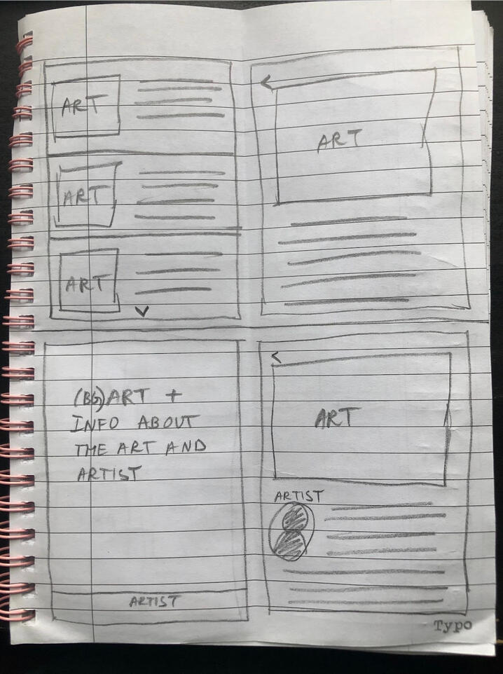 I got some pointers on how to present a problem and the UX research, and that led to synthesizing this research and starting on the sketching. I sketched out some of the important red routes of the app, that included the sign in page, the home page, and the key design elements of the pages in the navigation bar, a few of which are shown below.