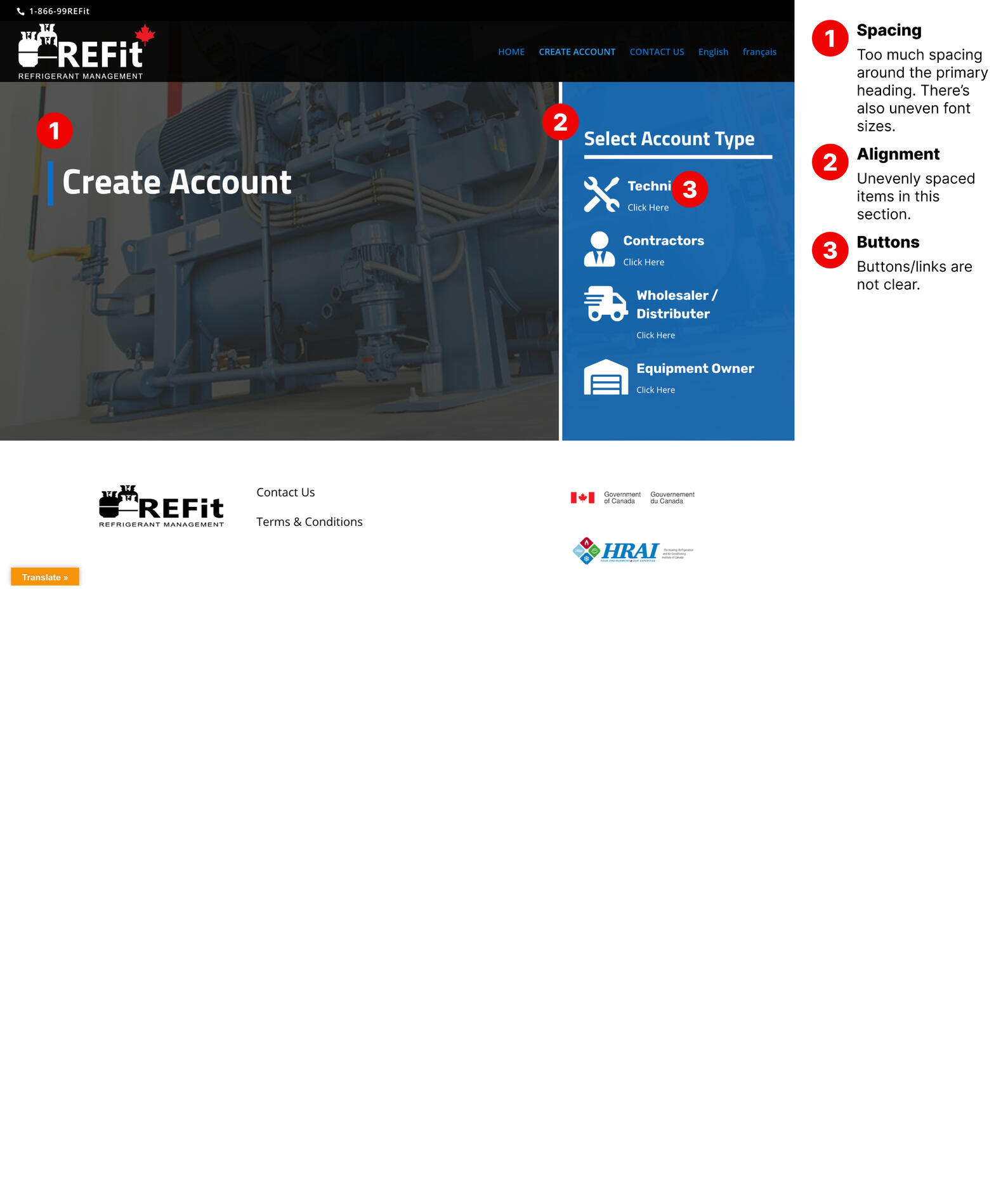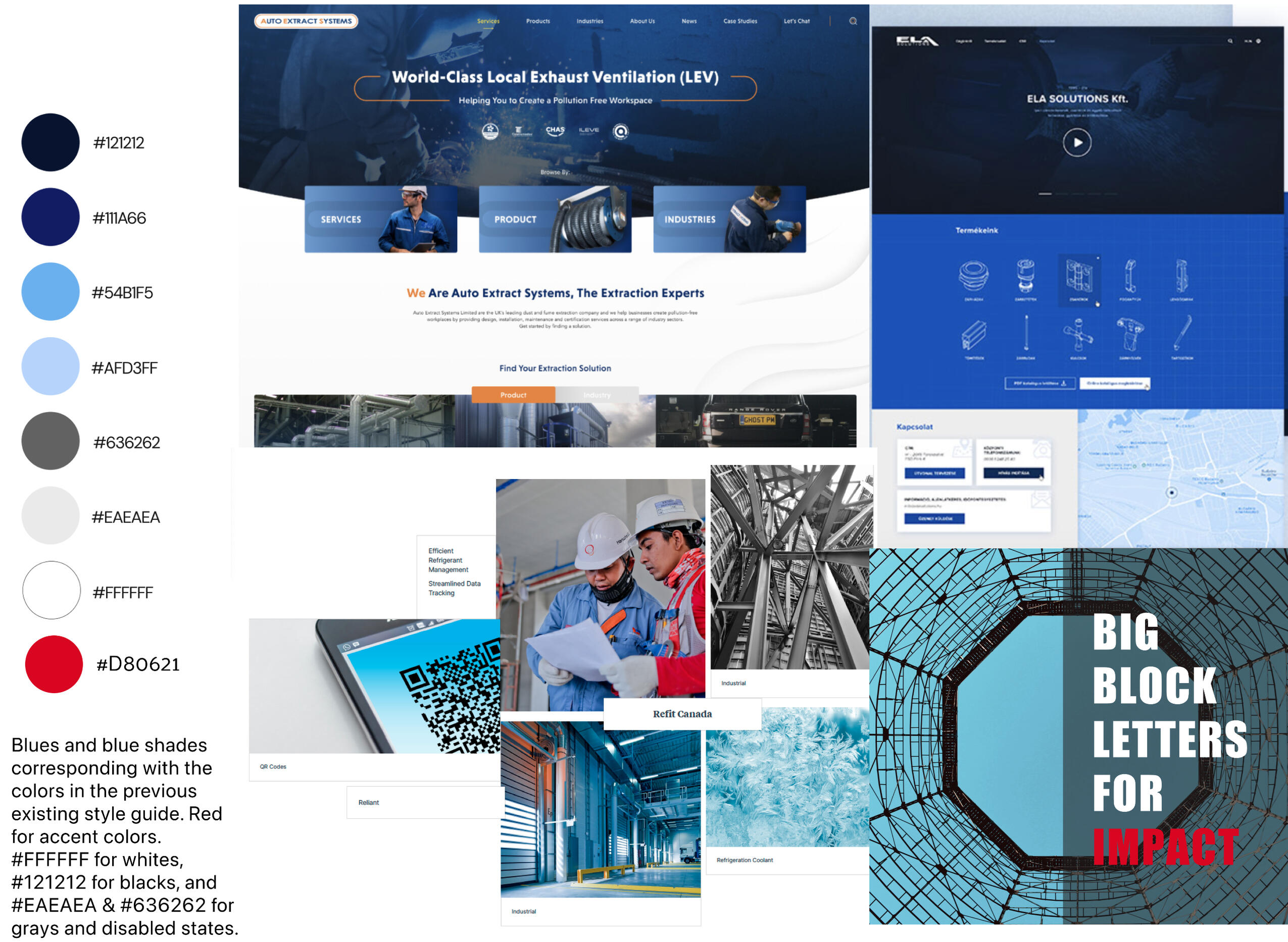 The shades of blues suited the theme of what Refit was selling, and the UI styles were from other industrial websites that are currently on the forefront of the industry. We decided on making a simple and ergonomic website which can be used by both buyers and workers alike.Here's a link to their original website, and you can see the heuristic evaluation for a few of their primary pages below.