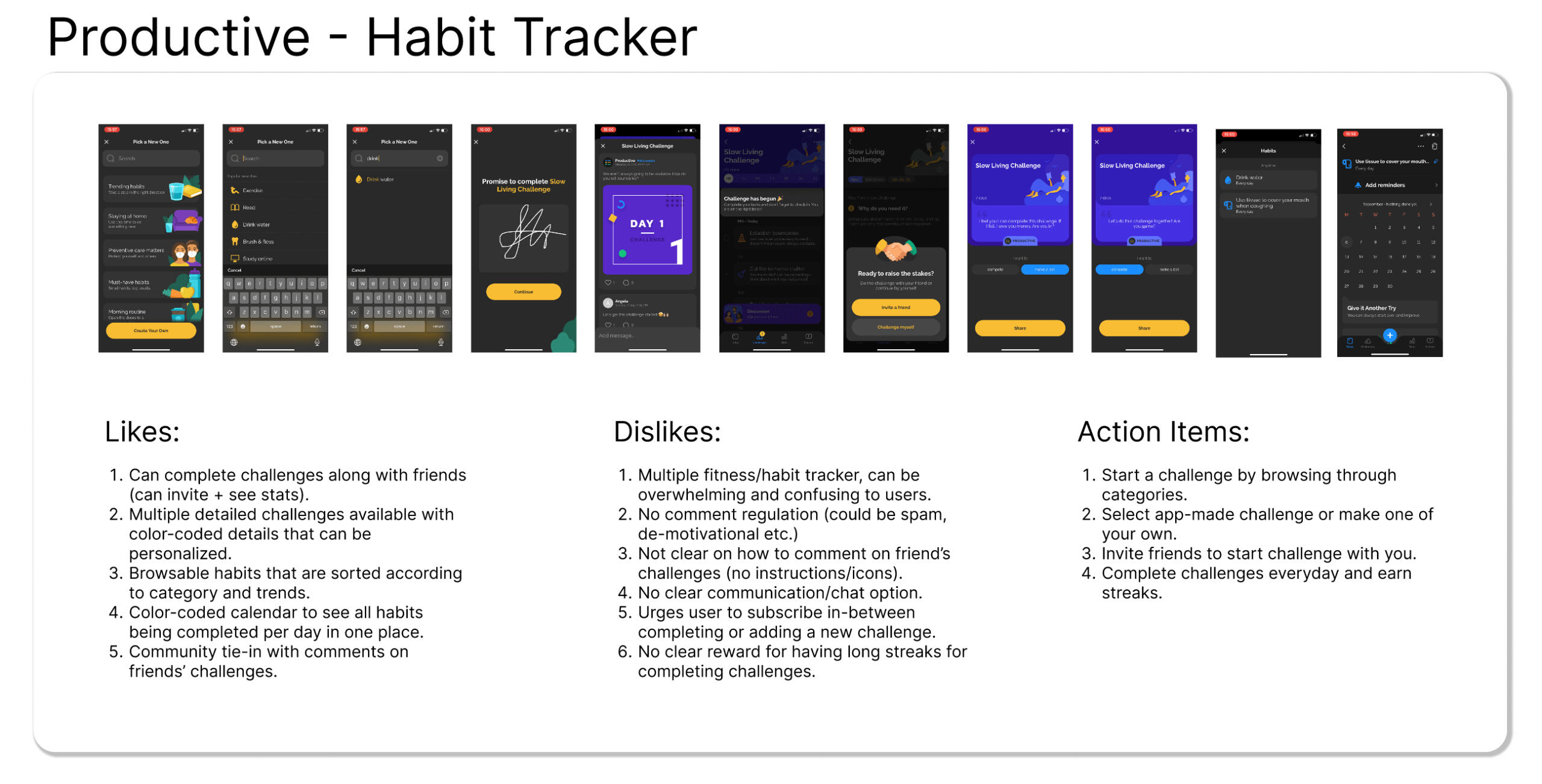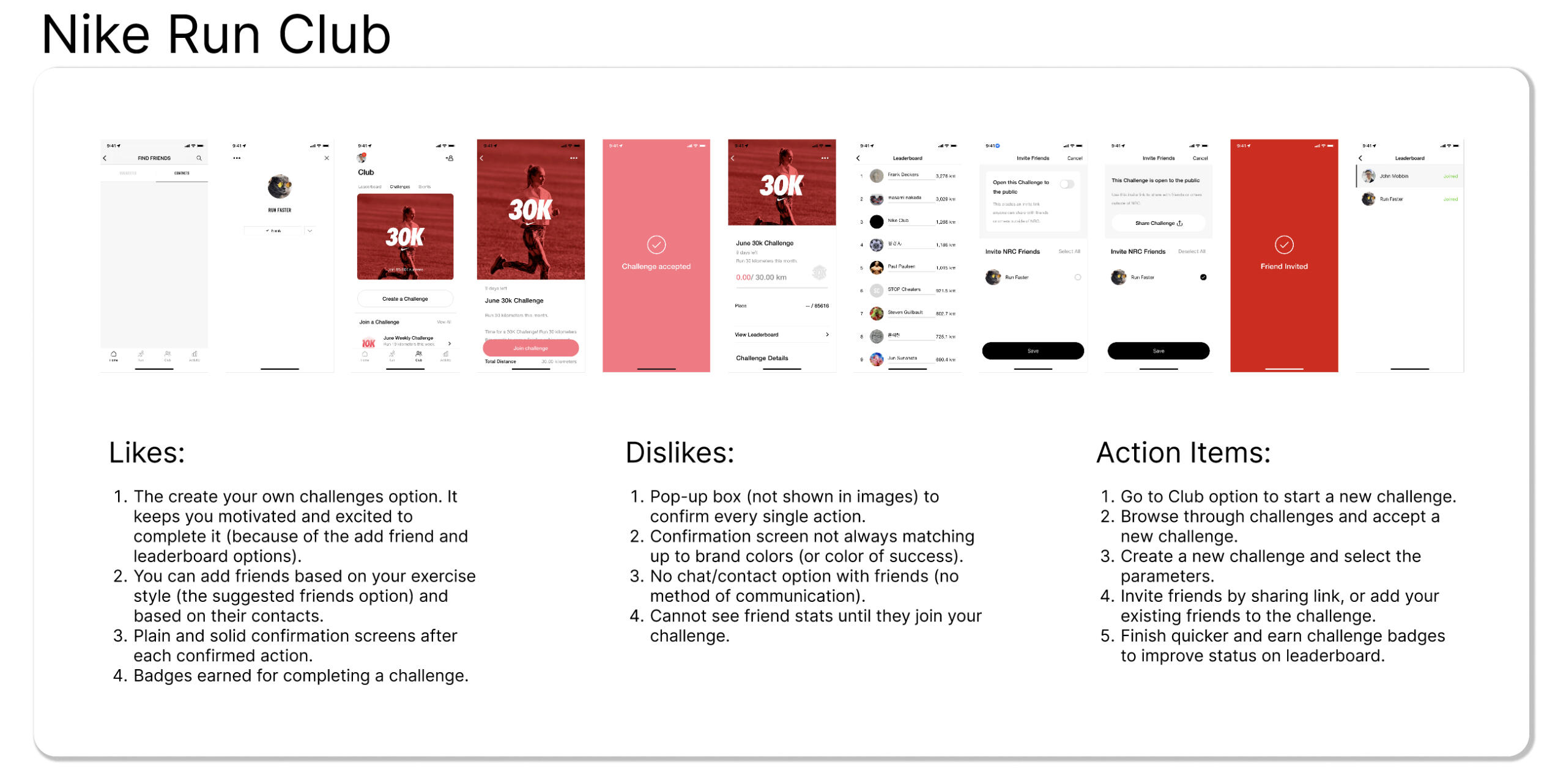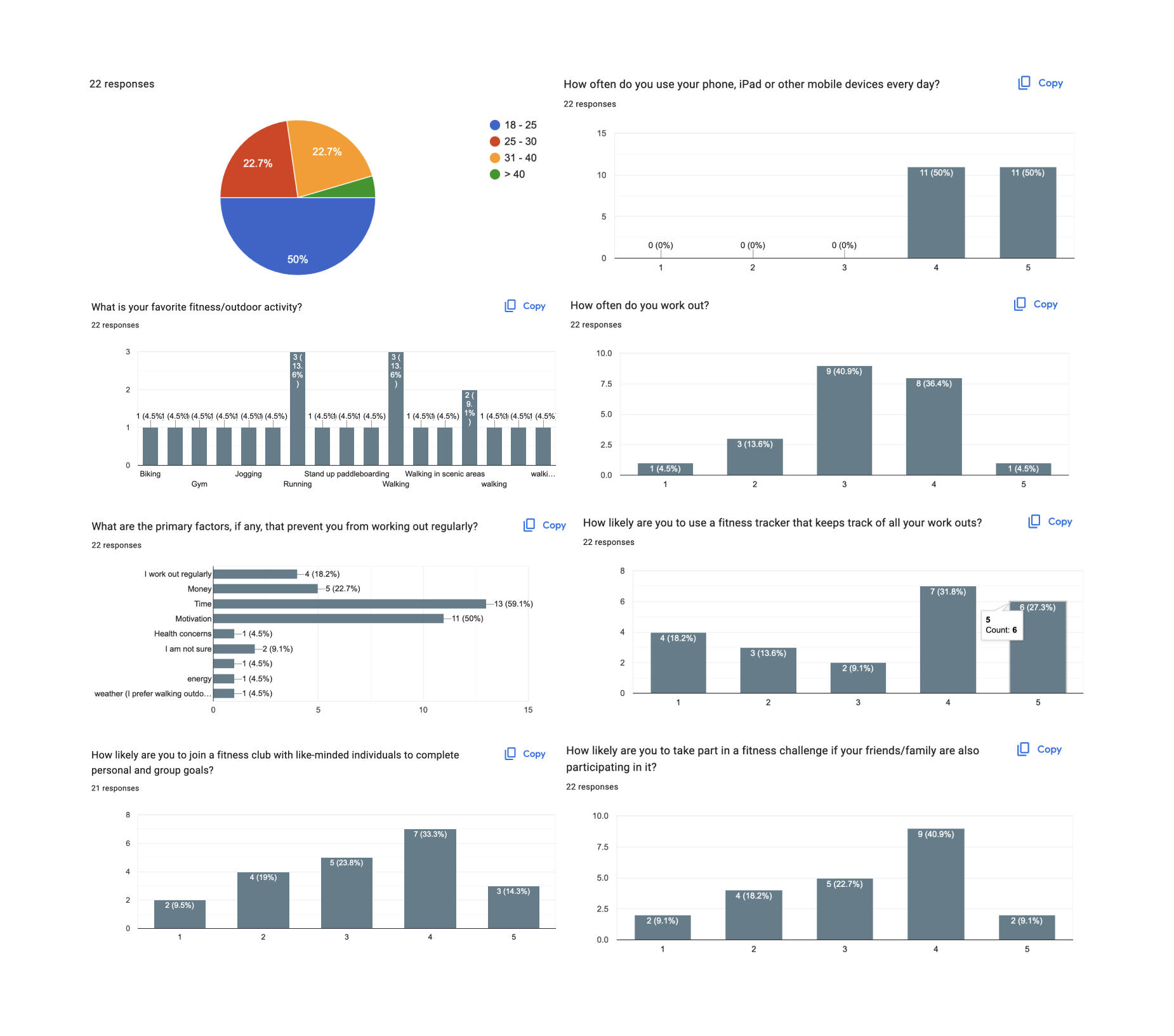 1. The most important challenge I faced was to narrow down the focus of the app into one thing. I have been told several times that it isn't possible to make an app that solves everything, and it was hard to pick out only one or two features from the problems that arose with my quantitative research. In the end, since the focus of the app from the prompt I was given was the fitness clubs and increasing user engagements, that is what I decided to focus on.2. Having people fill out my Google Form surveys was very cumbersome. Recruiting users for various tests and interviews took longer than anticipated. If there are monetary constrains, the only way to recruit for user interviews is through word of mouth and social media.3. Since this is an app that encourages users to be healthy, there is a lot of psychological research that goes behind the exact kind of motivation that is useful for a particular user. This app also incorporates social media elements (like followers, messaging other users, etc.) which is also decided on many other leading apps through psychological research. This is outside the scope of this project, but I would have loved to explore both these aspects further and determine what are the other call-to-actions and user task flows that can be incorporated to fit the goals of this app.