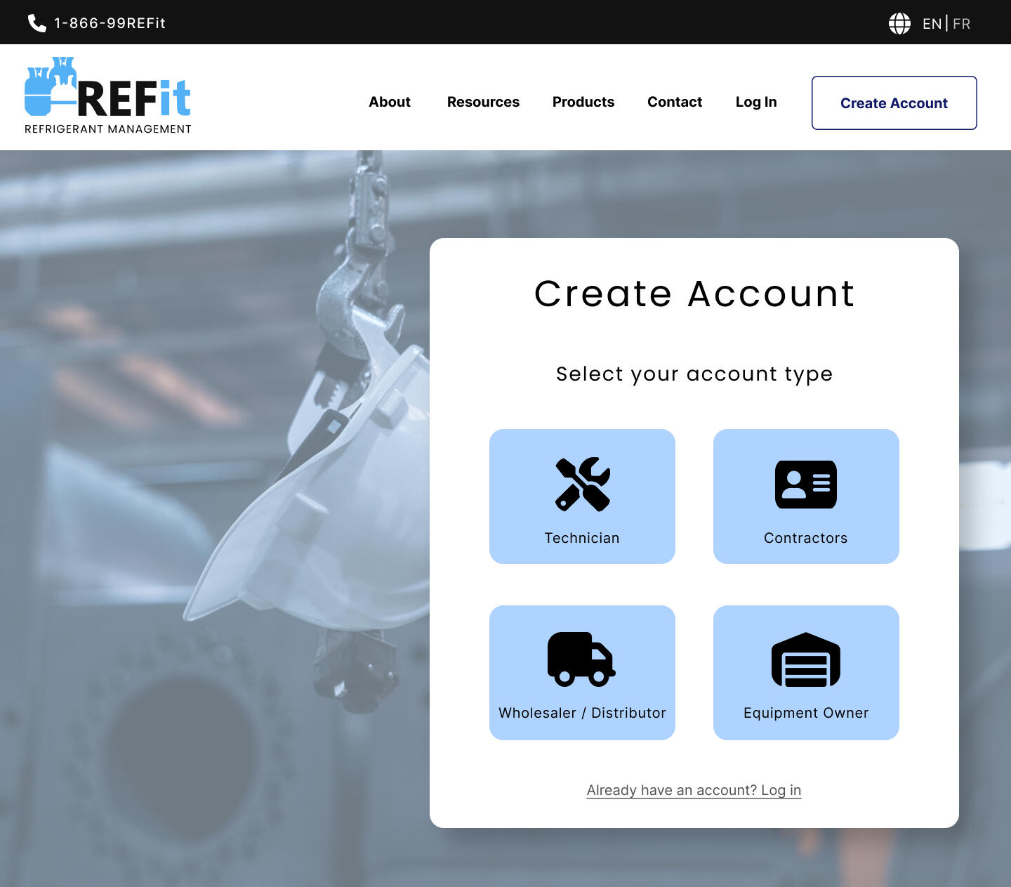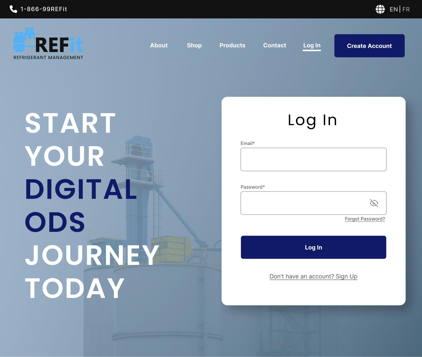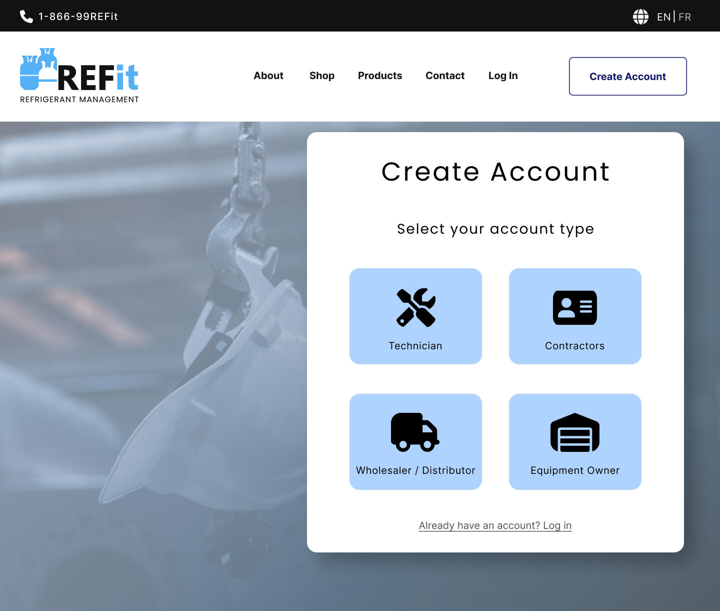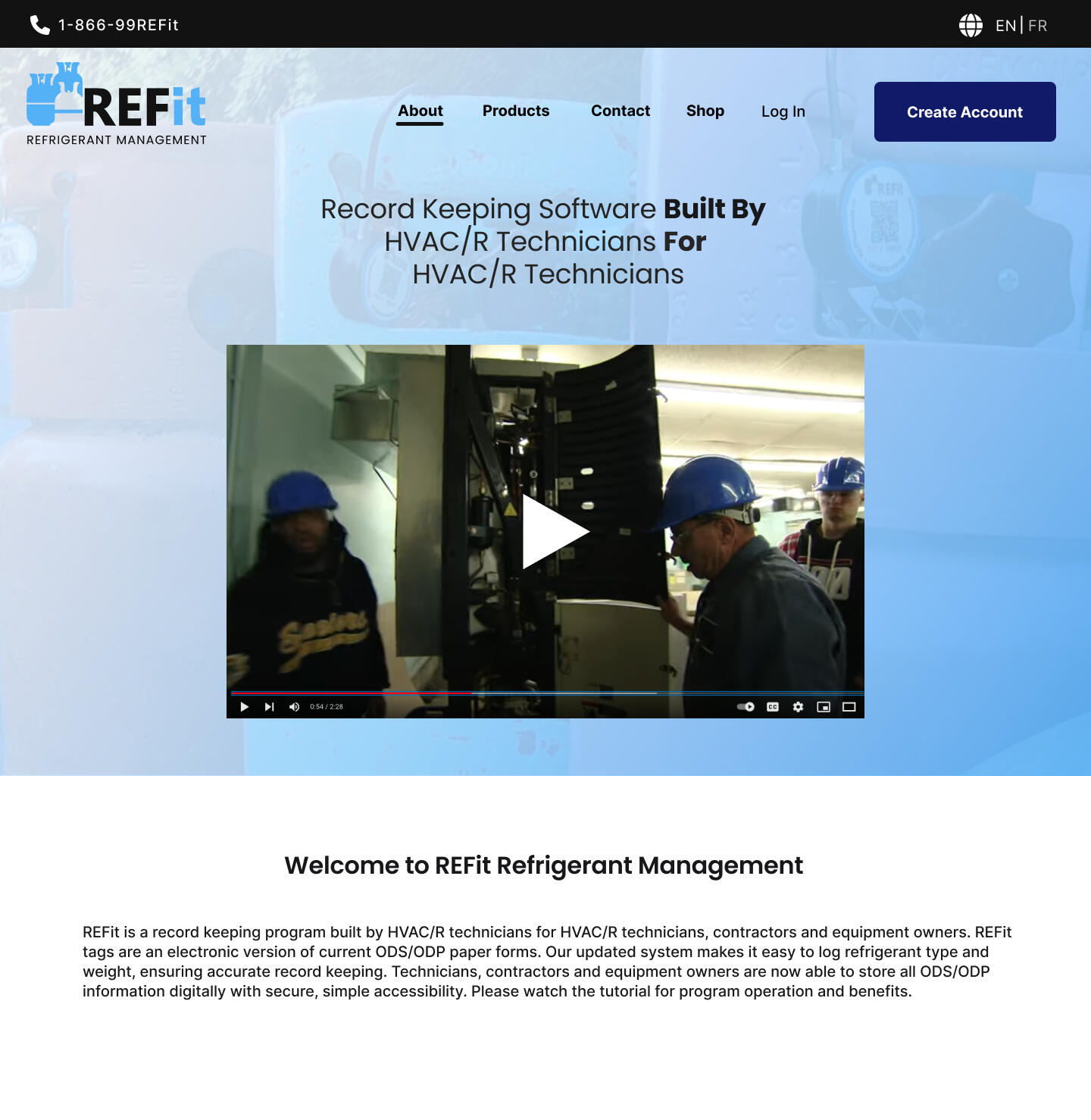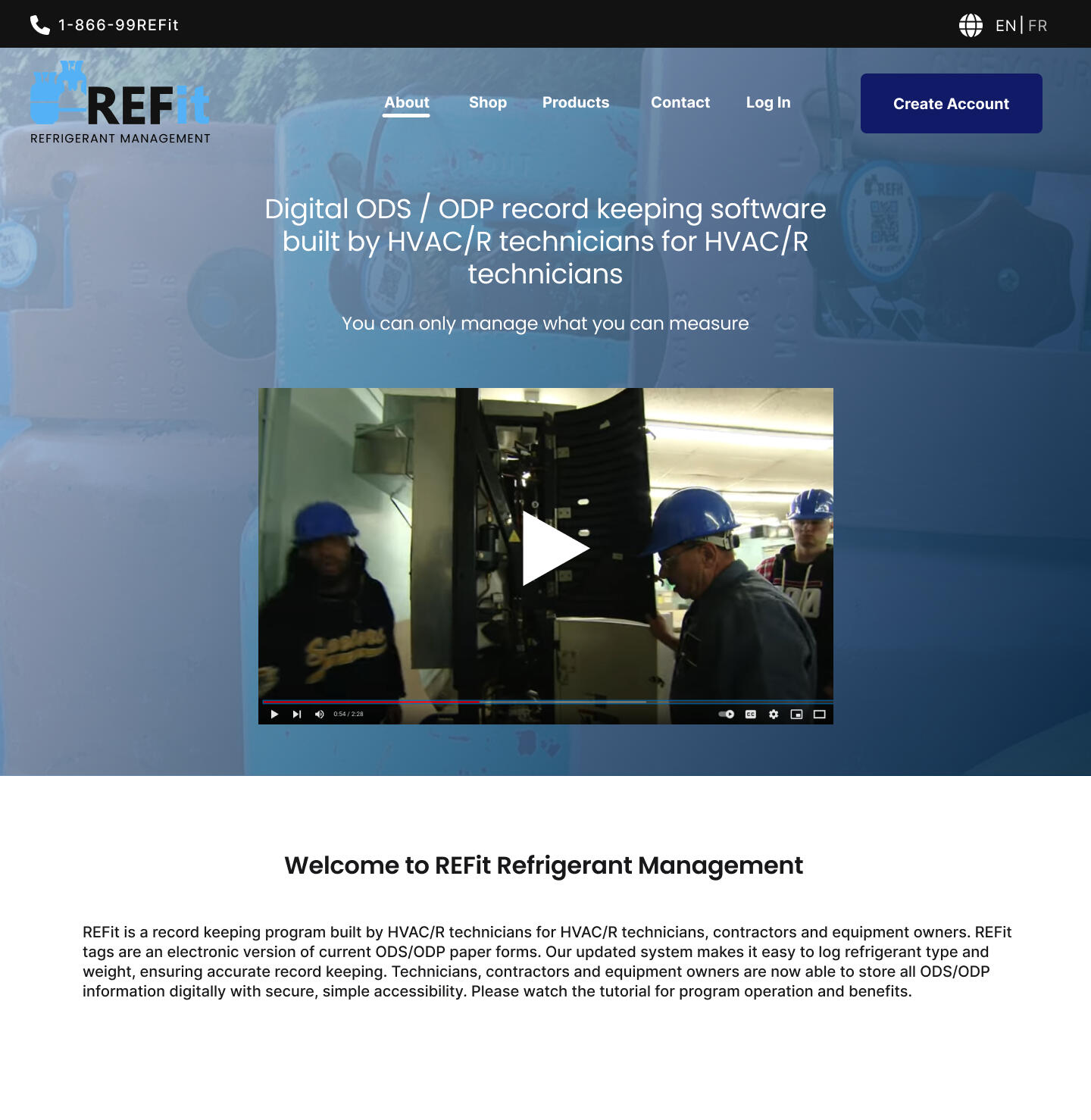 "Refit Canada is a company that does record keeping for refrigerants with a QR tag on industrial coolants. They want a smooth and iterative brand guideline for their current website to promote their product and to explain to their users how it works. They also want a few high-fidelity mockups to give the stakeholders a better understanding of their product. This is a B2B company, and caters to customers who are already in the industrial coolants industry."