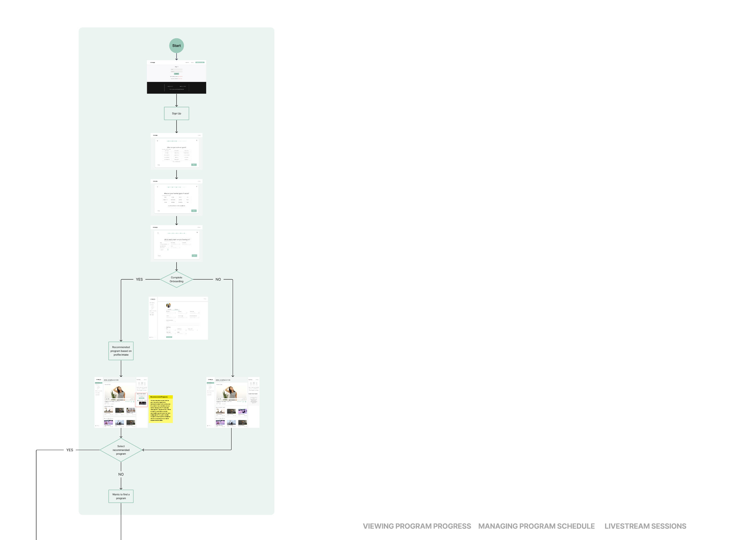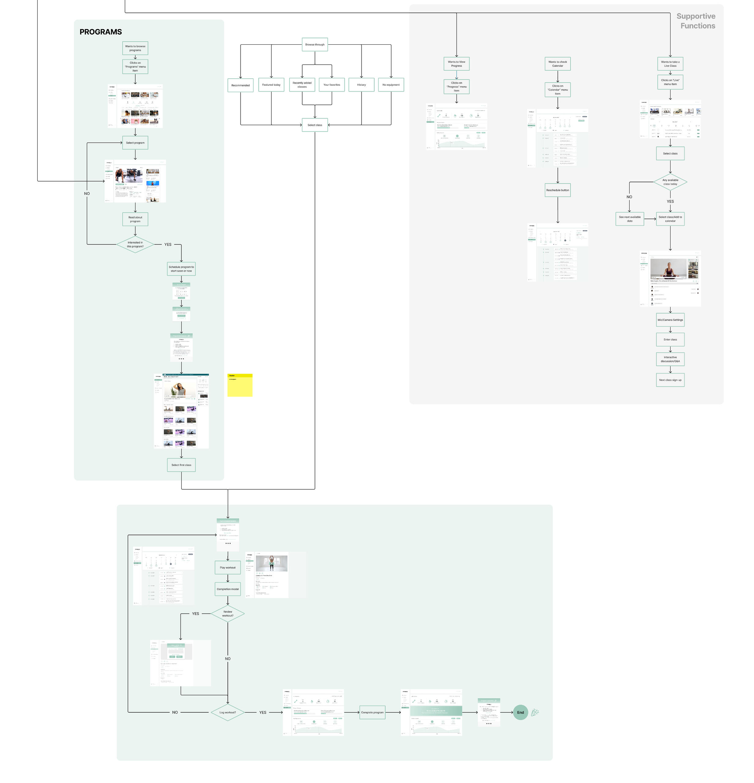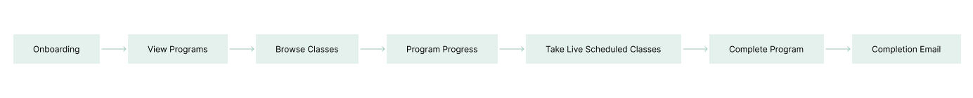 I mapped out key tasks—like uploading classes, managing bookings, and viewing earnings—and simplified them into cleaner flows. I reduced redundant steps and added clear entry points for first-time users. This helped my visualize the flow the users would see, and also see where the visual consistency is going wrong. After knowing a definite visual style, it would be easy to customize the platform to other white-label clients who want to integrate their content JETSWEAT's platform. Below is the simple initial flow that would map into the rest of the web flow pages.